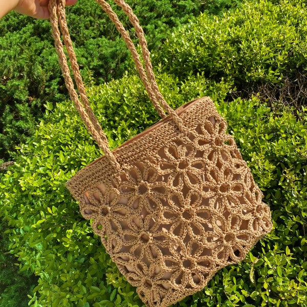 Absolutely gorgeous and one of a kind bag. The natural tone flower detailing makes it so classy and chic! Lots of hand work dedicated to create this beautiful knitting details!