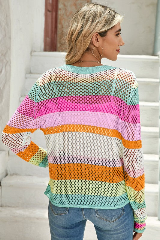 The intricate striped pattern adds visual interest, while the colorblock detailing brings a contemporary edge to this versatile top.
