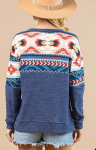 Super Cute Aztec Print and Waffle rexlaxed Long Sleeve Top